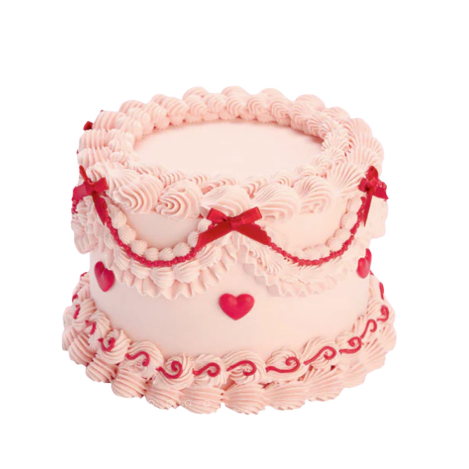Vintage Buttercream Cake with Ribbon & Heart|复古奶油蛋糕 (Lambeth-Style Piping)